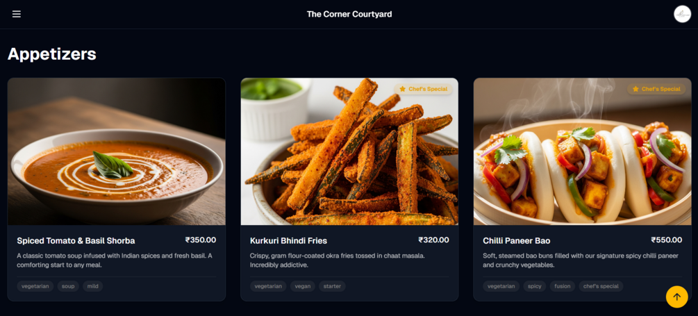 Live Demo: Check out a demo restaurant here: https://menuluxe.vercel.app/menu/thecornercourtyard